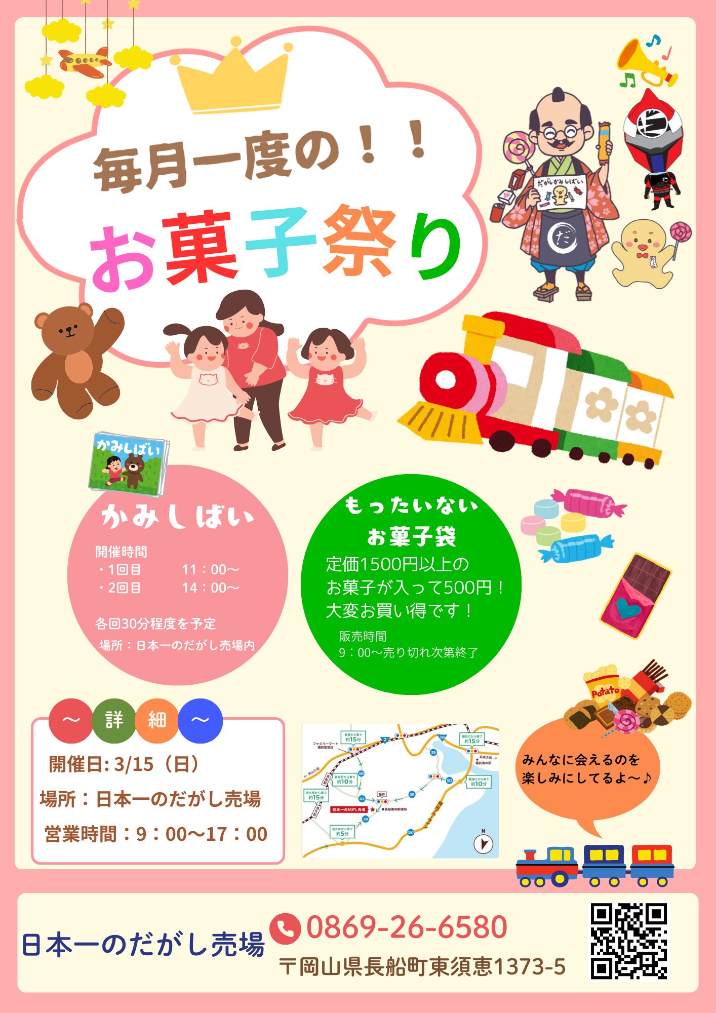3月15日の第3日曜日にお菓子祭りを開催します!!