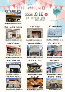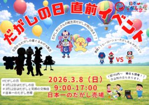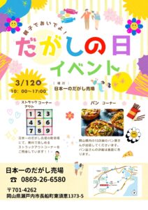 3/7(土)は岡山電気軌道本社、8(日)、12(木)は日本一のだがし売場にて、イベントを行います(^^)♪
