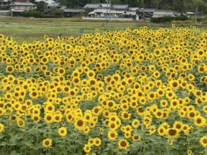 日本一のだがし売場の駐車場裏にひまわりが咲いています!!